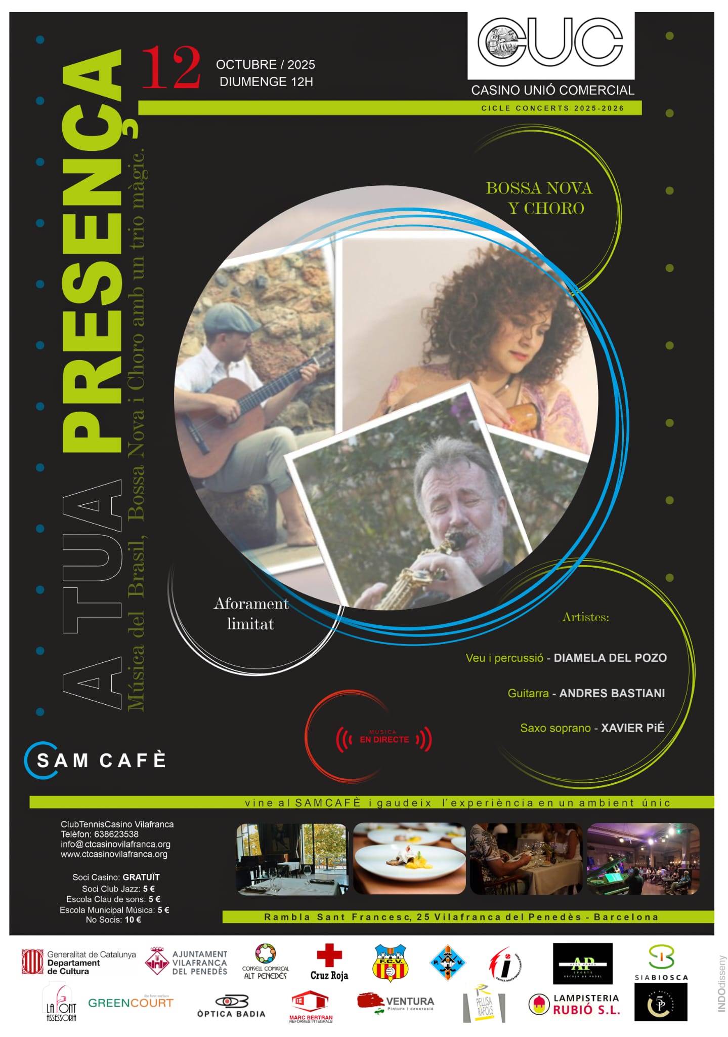 ➡️ Ens acompanyarà el trio “A Tua Presença”, amb música del Brasil, Bossa Nova i Choro.